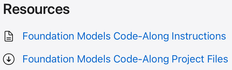 Here’s what the instructions meant: a code-along is where you work on a project and its features together with an Apple Engineer. In this session, we learned how to add Apple’s on-device LLM to an app using the Foundation Models framework—building generative-AI features in Xcode with text generation, structured output, streaming, and tool calling.