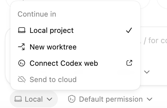 It’s funny how a tiny CLI command can shift your entire development workflow. For years I was stuck in the same pattern: git stash, git checkout, git stash pop, repeat and branching. Then I worked a lot with the ChatGPT macOS app and its connectors. Next, the Codex macOS app came along and, along with the Skills tab, there was a picker for the task run destination. Bottom bar is very informative: