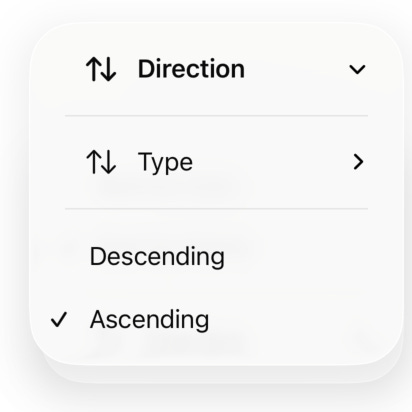 Recently, for one of the apps (built with UIKit, with some parts in SwiftUI), there was a task to add filtering. Typically, a separate sheet or modal view works better — filter state handling, restoration, and persistence are more flexible with that approach. However, basic two-option sorting can be implemented inline as well.