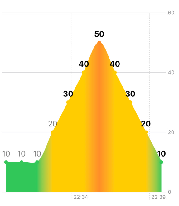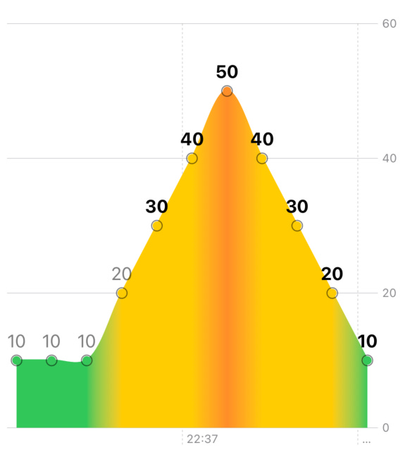 .chartYScale(domain: 0...(min(100, data.map(\.humidity).max() ?? 0) + 10))We are moving pretty well! Fixing axis labels would be a good milestone, don’t you think? Right now we can’t even tell what time is it.